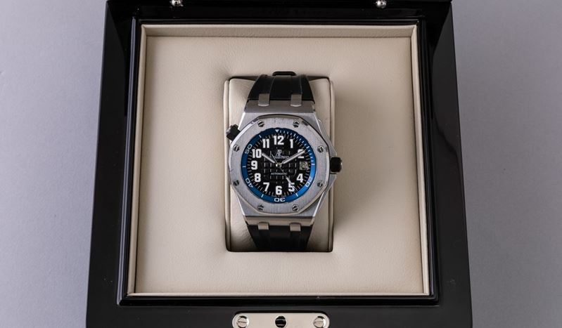 AUDEMARS PIGUET - Offshore Diver Boutique Edition, ref 15701ST in acciaio con quadrante Gran Tapisserie nero e rehaut blu, [..]