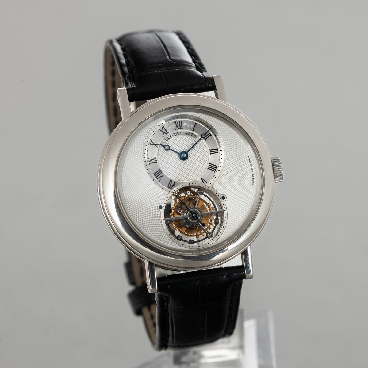 BREGUET - Classique Complication Tourbillon ref 5357 in platino, carica manuale, fondello a vista con lavorazione della platina a mano, quadrante bianco guillochè con scatola e garanzia