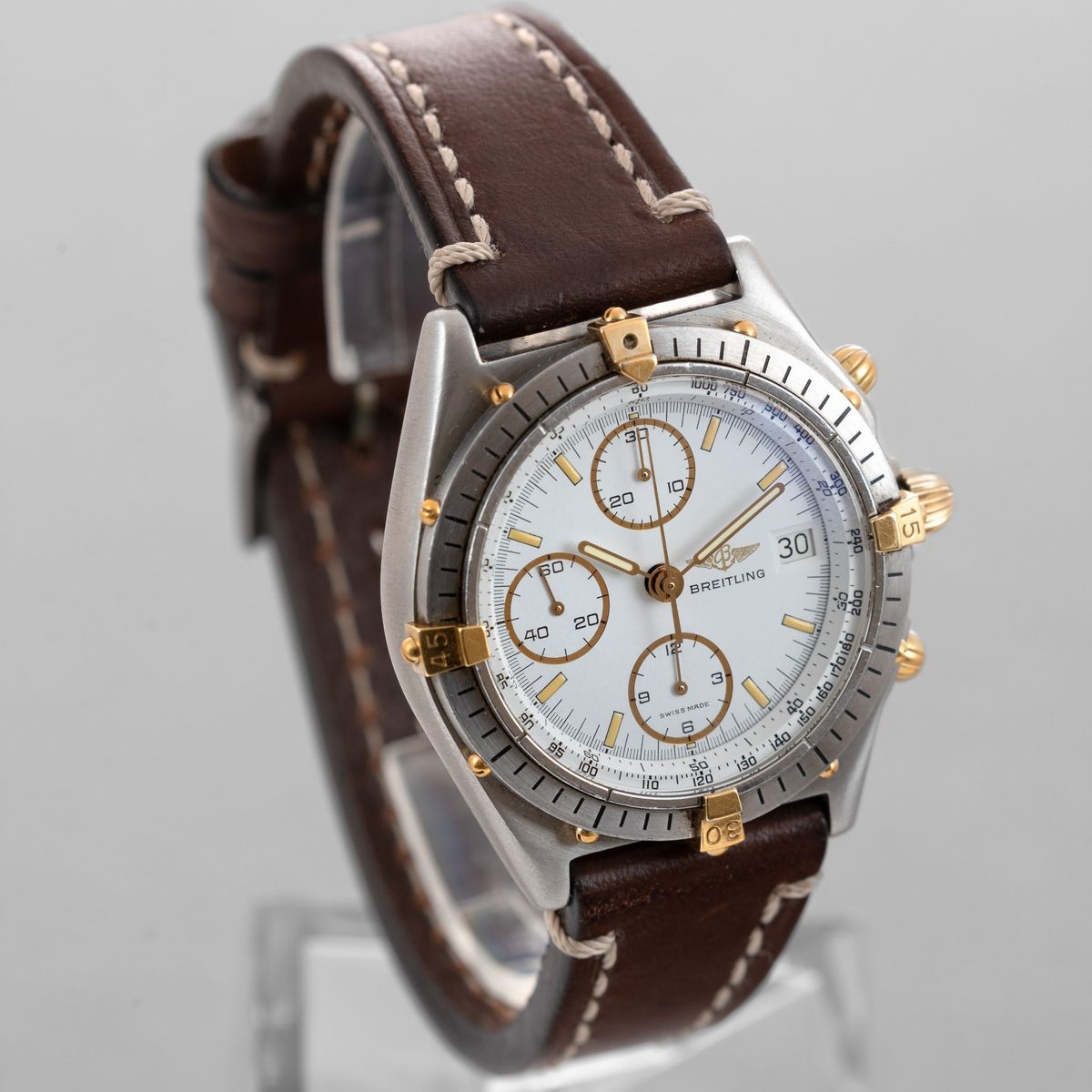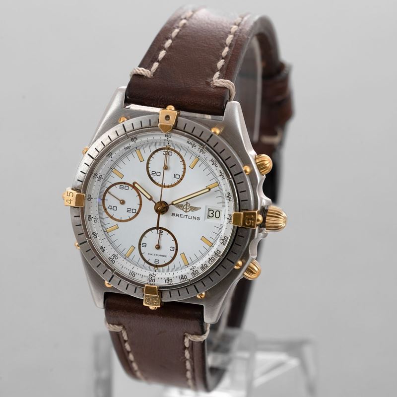 BREITLING - Chronomat acciaio e oro cronografo automatico tre contatori verticali, con ghiera girevole, quadrante bianco, [..]