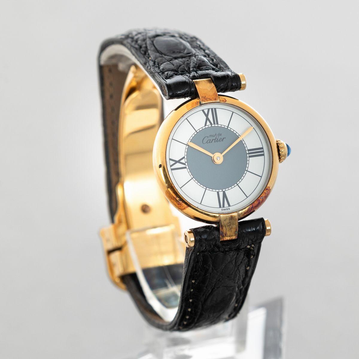 CARTIER - Vendome Vermeil in argento 925 placcato oro, quadrante bitonale, cinturino in pelle con fibbia laminata e movimento al quarzo