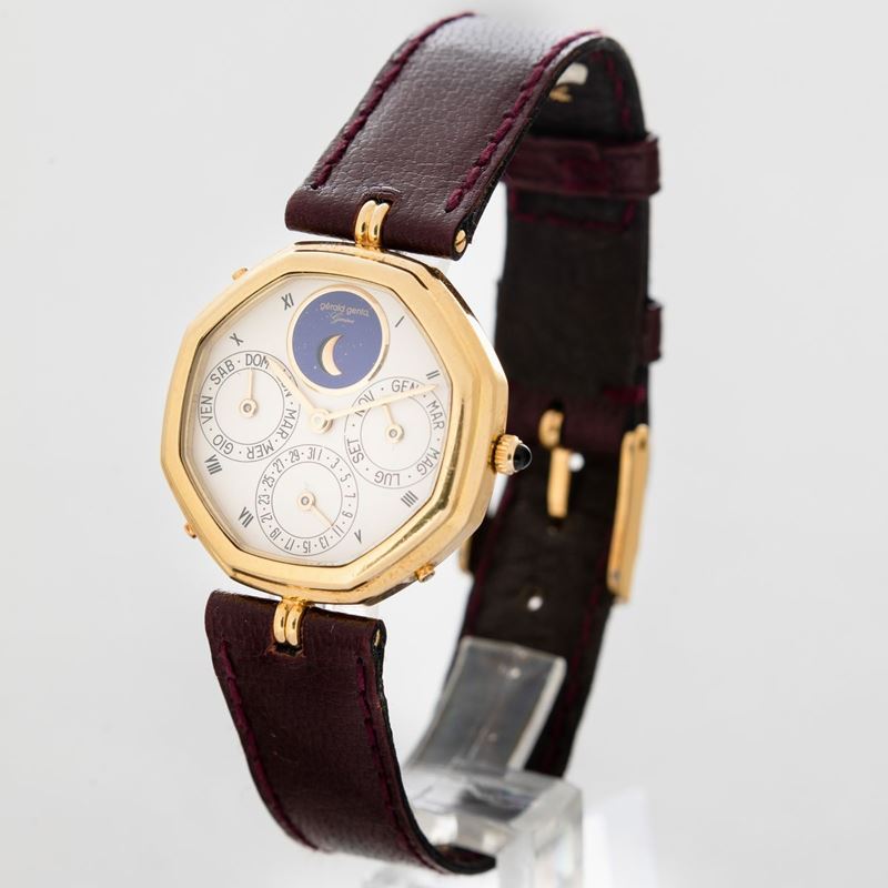 GERALD GENTA - Demi Perpetuelle in oro 18k di forma ottagonale con anse Vendome, fasi lunari con quadrantino in Lapis, carica automatica