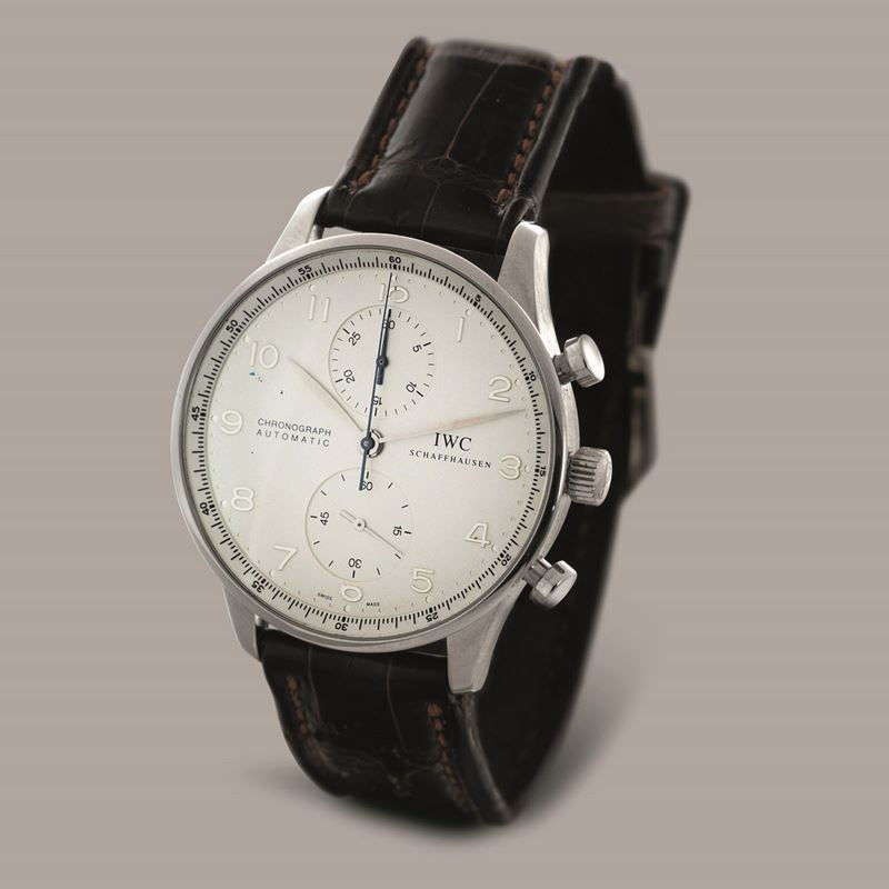 IWC - Portoghese ref 3714 in oro bianco 18k, cronografo due contatori verticali, quadrante Argentè con numeri Arabi con [..]
