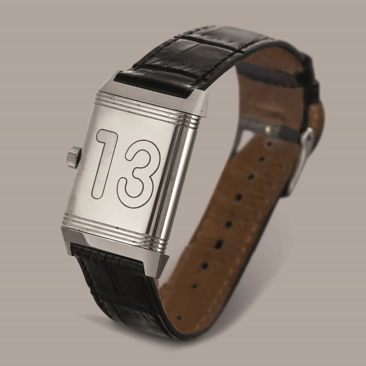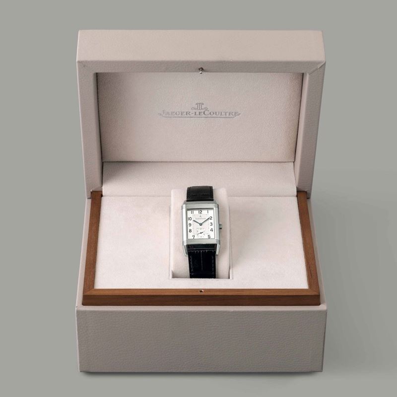 JAEGER LECOULTRE - Reverso Grand Taille in acciaio, quadrante bianco con numeri Arabi, movimento a carica manuale secondi al sei