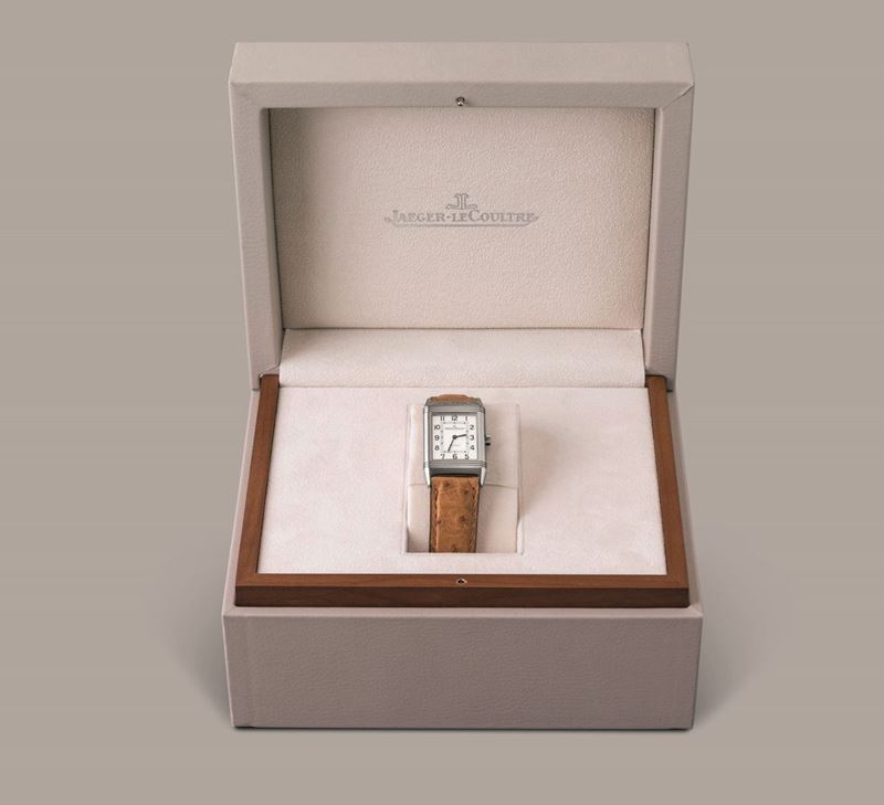 JAEGER LECOULTRE - Reverso in acciaio quadrante Argentè con numeri Arabi, movimento al quarzo con chiusura deployante scatola [..]