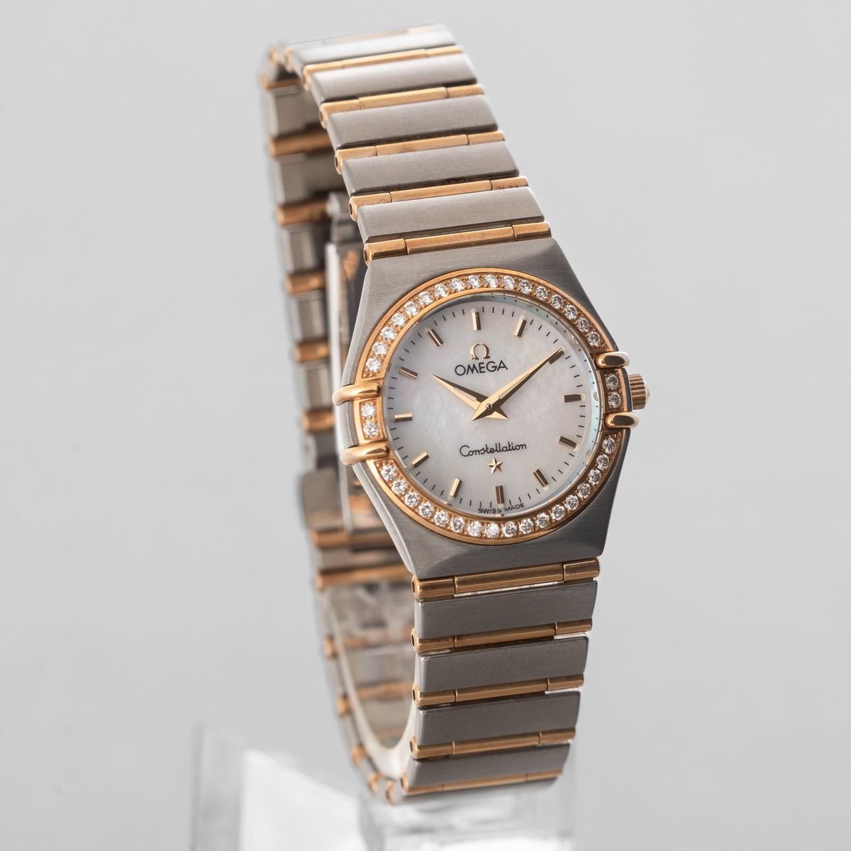 OMEGA - Costellation Lady, quadrante madreperla con indici applicati acciaio e oro e movimento al quarzo, con scatola e [..]