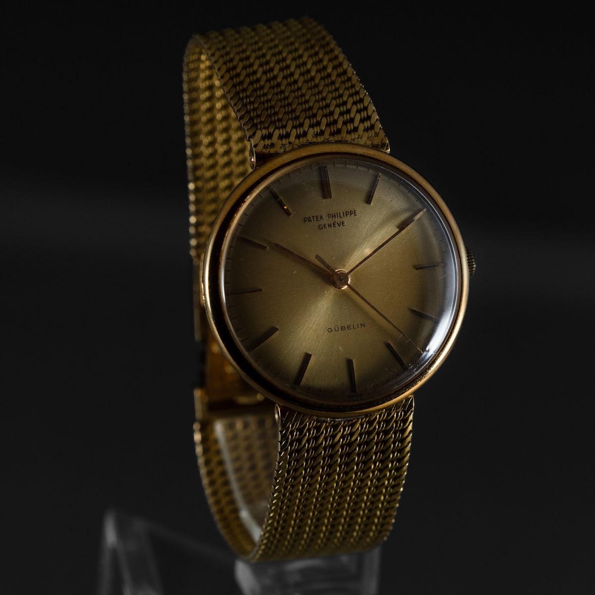 PATEK PHILIPPE - Calatrava in oro giallo 18k braccialato, quadrante dorato personalizzato per "Gubelin" con indici applicati, [..]