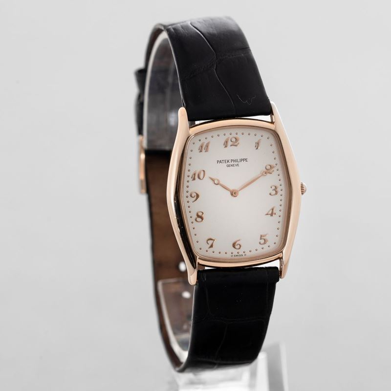 PATEK PHILIPPE - Gondolo ref 3842R in oro rosa 18k, quadrante Argentè con numeri e sfere Breguet, carica manuale extrapiatto