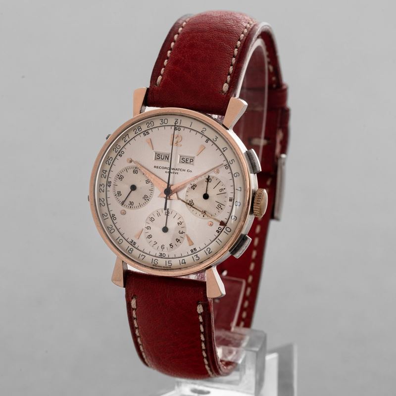 RECORD WATCH & CO - Raro Datocompax in acciaio e oro rosa, quadrante Argentè tre contatori e calendario completo, carica [..]