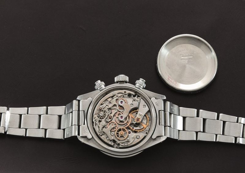 ROLEX - Cosmograph Daytona ref 6265 in acciaio cronografo tre contatori con lunetta tachimetrica, tasti a vite e quadrante [..]
