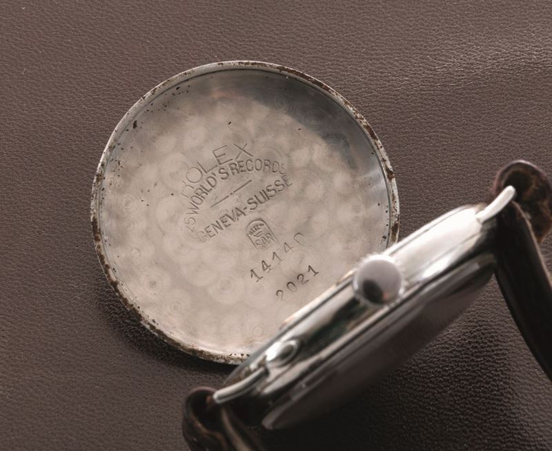La Referenza 2021 è riconosciuta come il primo Cronografo da Polso che Rolex abbia mai prodotto e pertanto è uno dei modelli più rari e ricercati dai collezionisti della Maison. La rarità assoluta del presente orologio risiede nel materiale di costruzione della cassa, l'acciaio. La gran parte della produzione di questa referenza presenta infatti casse in oro giallo 18k e al meglio delle nostre ricerche, non sono apparsi in asta altri orologi di questo modello in Acciaio.