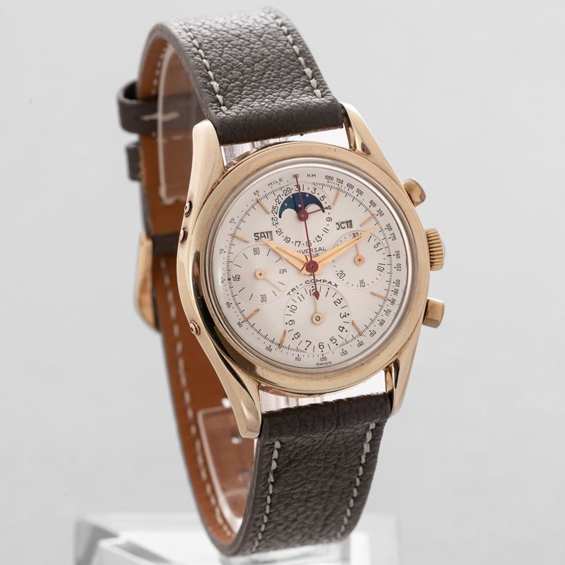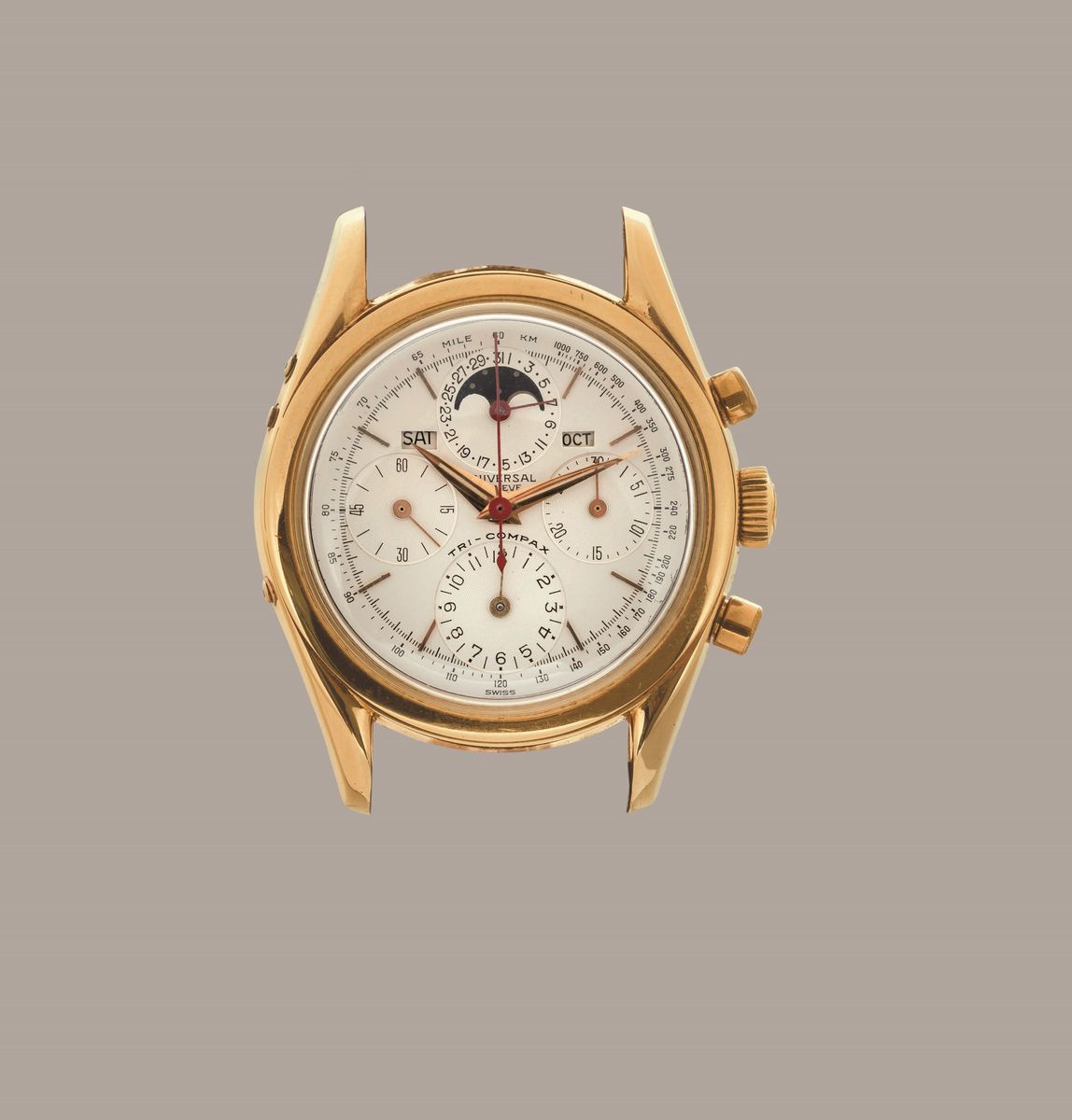 UNIVERSAL GENEVE - Tricompax ref 522101-1 in oro giallo 14k, cronografo a carica manuale con calendario completo e fasi [..]