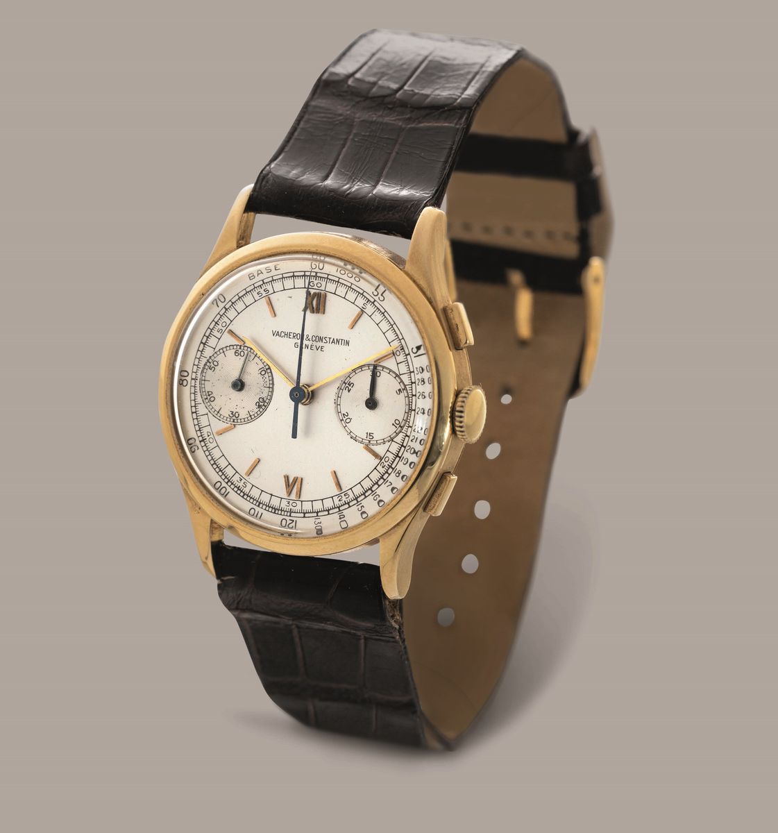 VACHERON & CONSTANTIN - Raro cronografo ref 4072 in oro giallo 18k, quadrante Argentè due contatori con scala tachimetrica tasti quadri e fondello a scatto