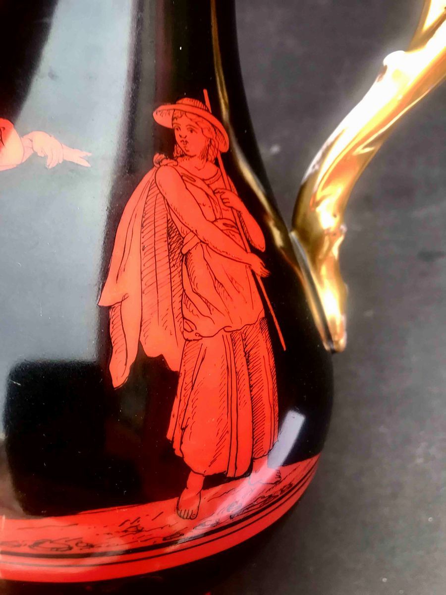 Bella brocca in porcellana dipinta e dorata. XIX secolo, Napoli (?)