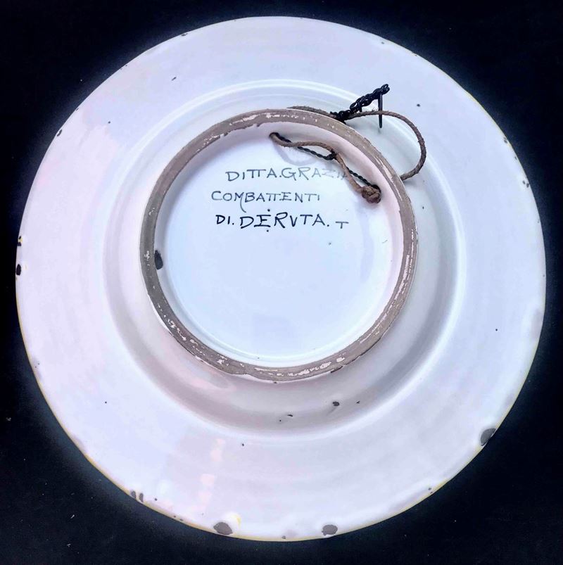 Grande piatto da parata dipinto. Ditta Grazia combattenti Deruta. XX secolo