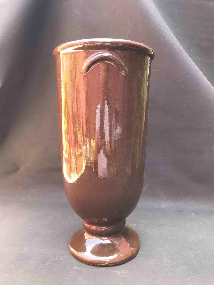 con due anse appena accennate smaltato in marrone. H cm 40,5; larghezza cm 20 ca