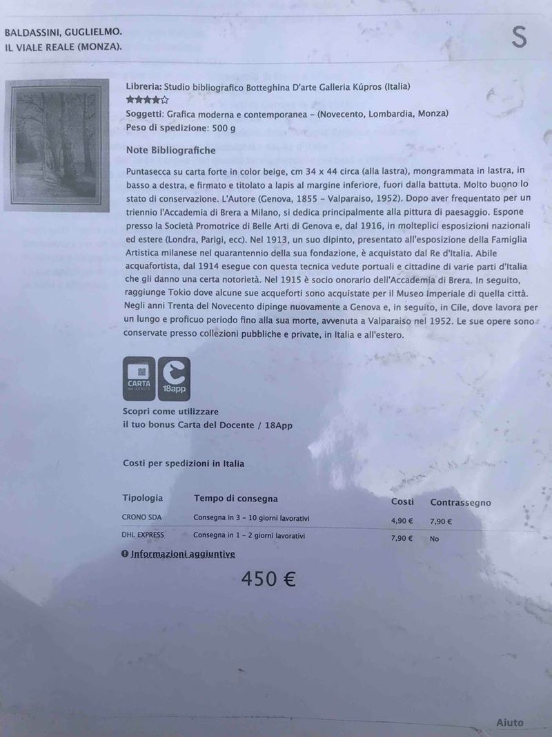 Guglielmo Baldassini (1885-1952) Il viale Reale (Monza), grande puntasecca