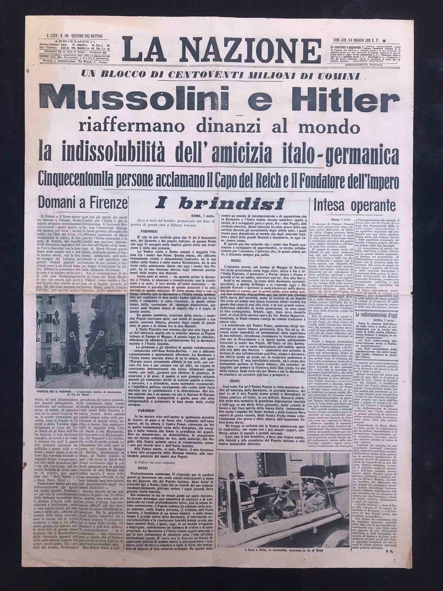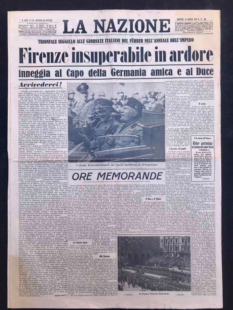 La Nazione front page e retro di 4 numeri con avvenimenti storici