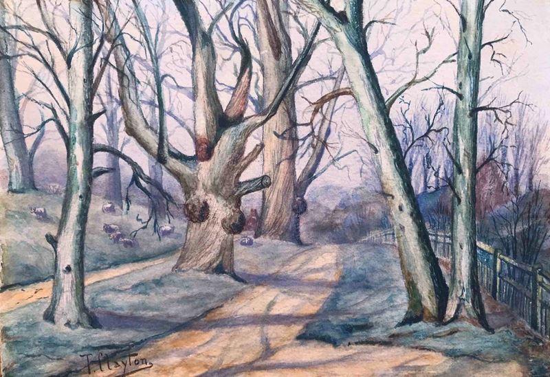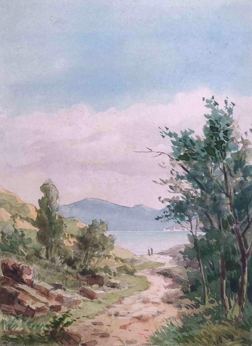 4 acquerelli e un olio non terminato. Misure della più grande cm 30x15