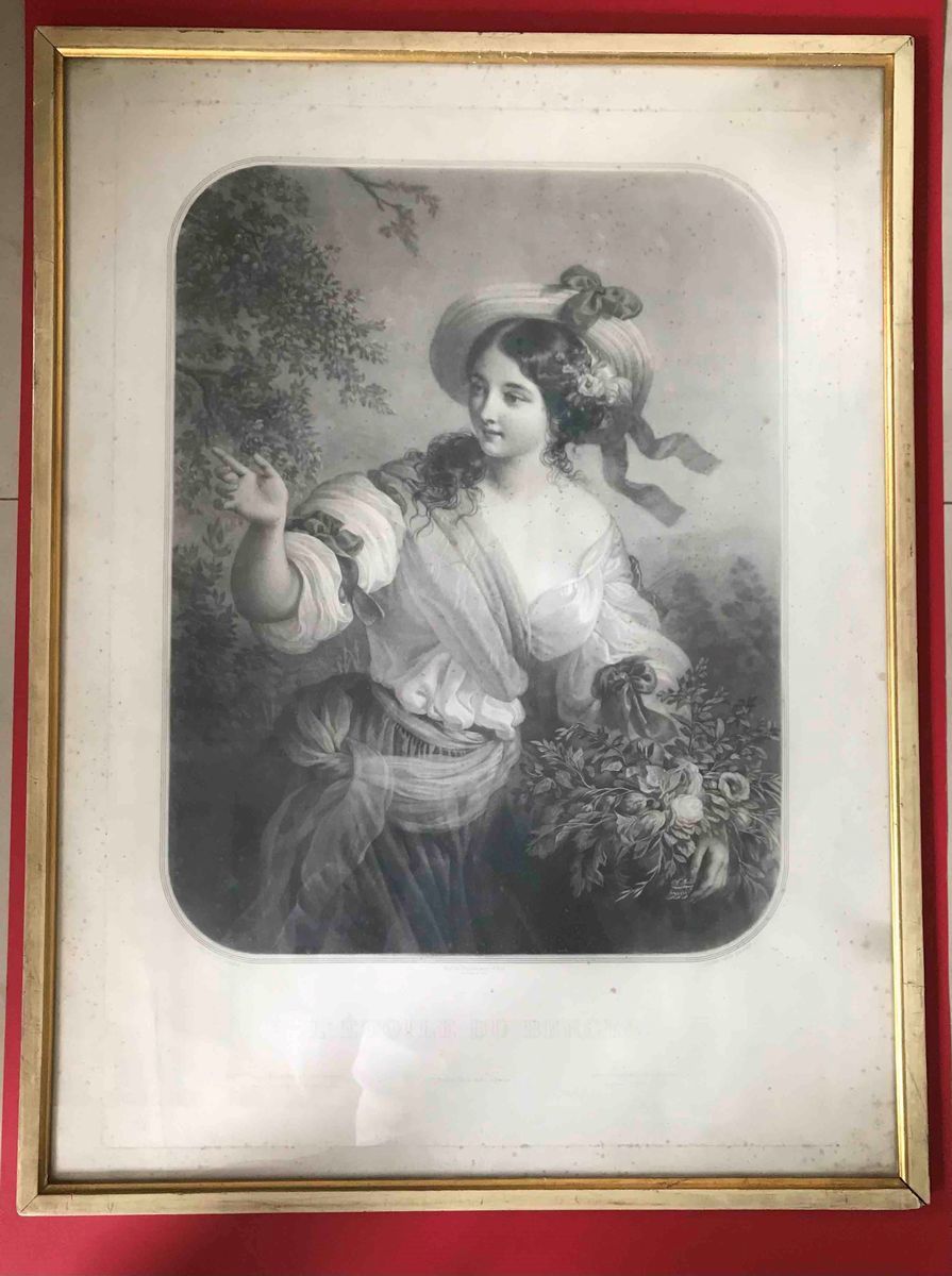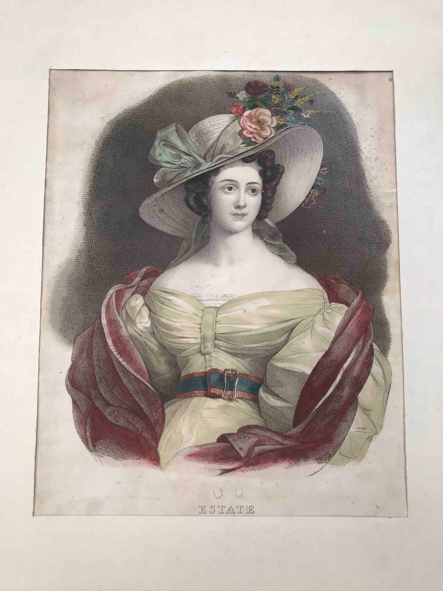 Lotto di tre stampe dell'800, soggetti femminili, 2 acquerellate
