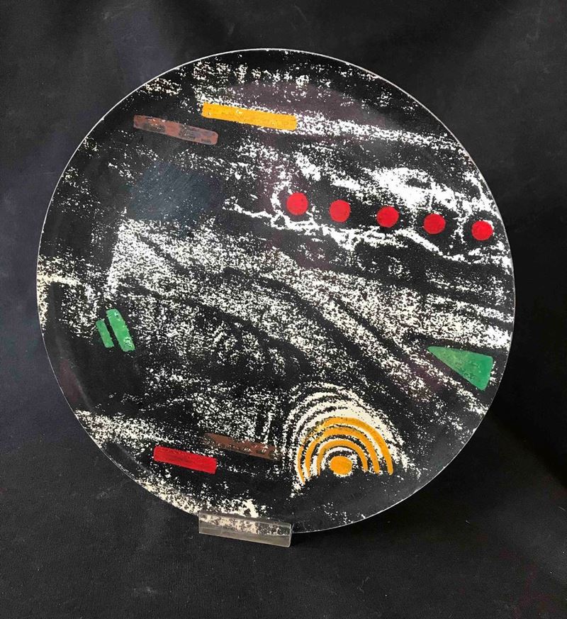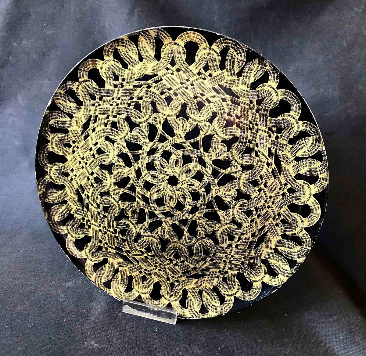 Marca Victor. Coppia di piatti in alluminio decorato, anni'50