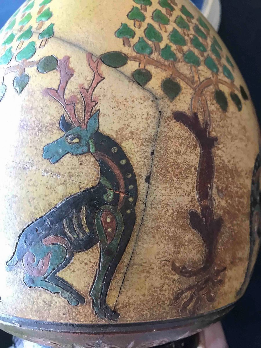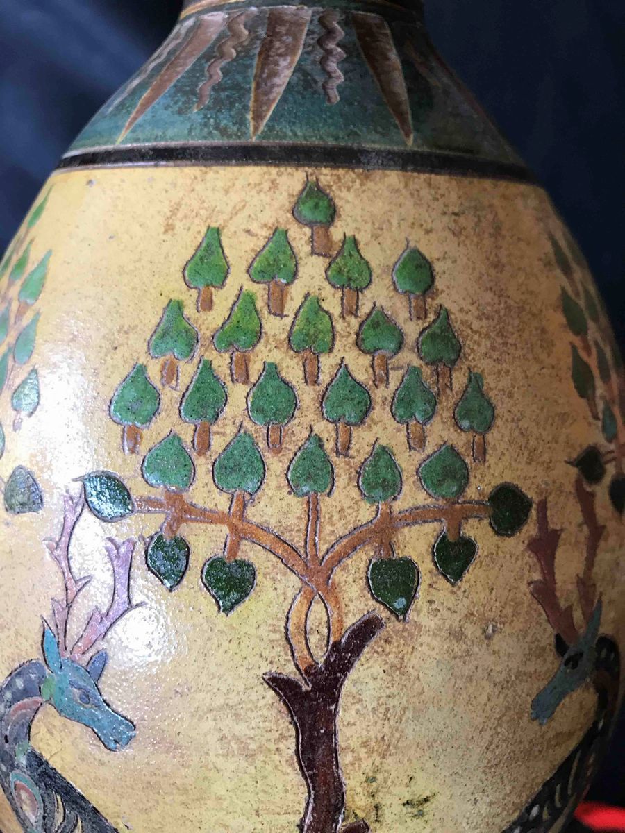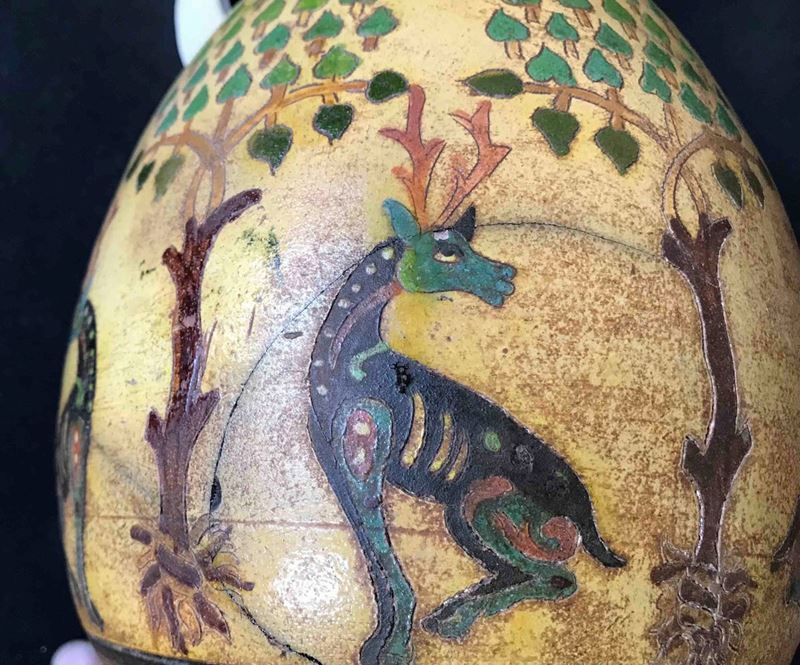 Vaso graffito e dipinto Firmato e numerato sotto la base. H cm 23. Gravi danni (felures e riparazioni)