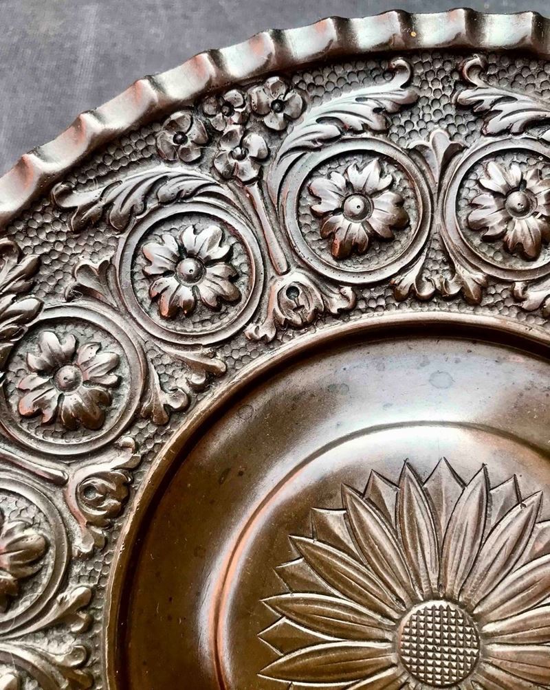Piatto in rame sbalzato. XIX secolo