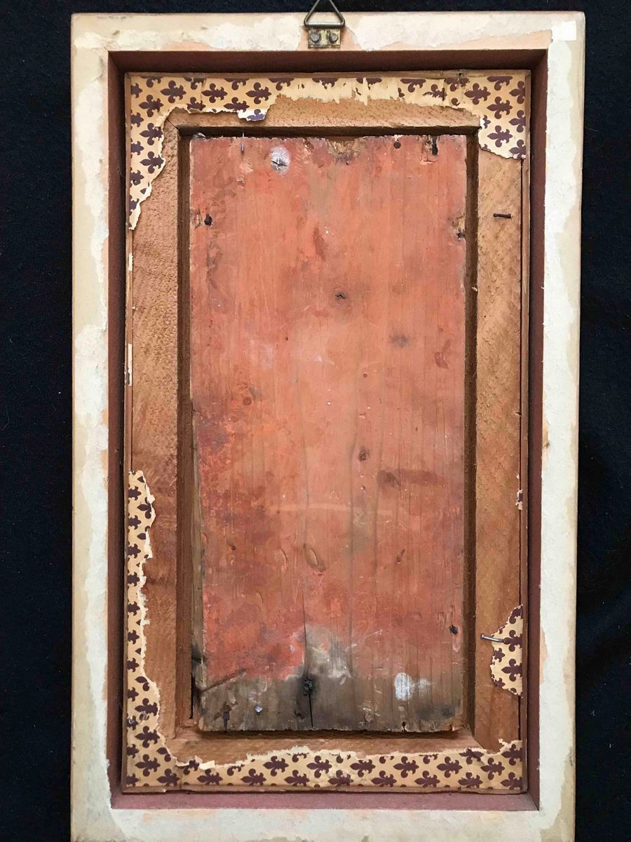 olio su tavola. Lacune e restauri. Tavola cm 11,9 x 25,3; cornice cm 21 x 34,5