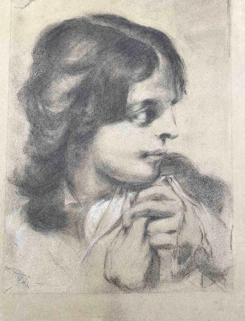 Paesaggio con pino, matita cm 23 x 30 e testa di giovane, cm 32 x 38,5 carboncino e biacca