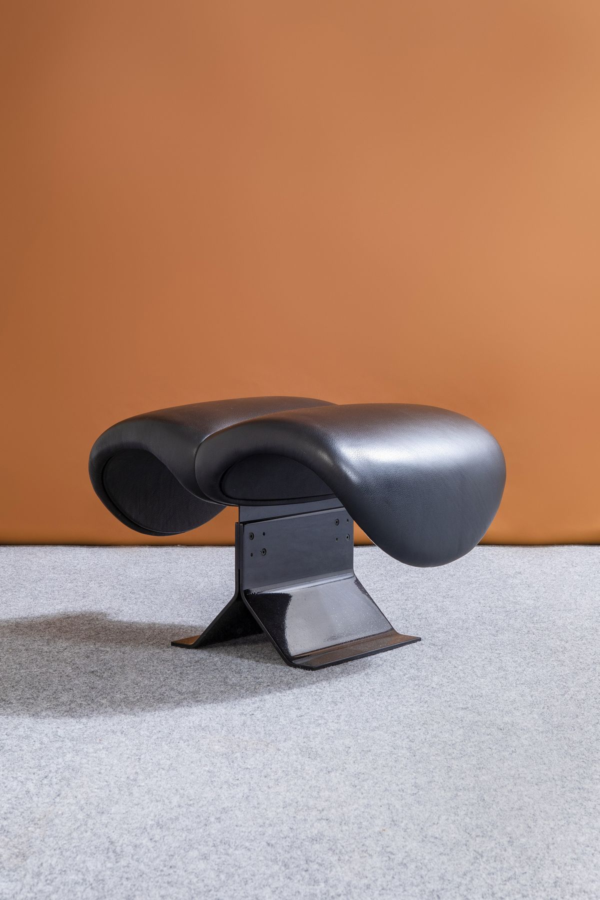 Struttura con rivestimenti in pelle e sostegni in metallo laccato.