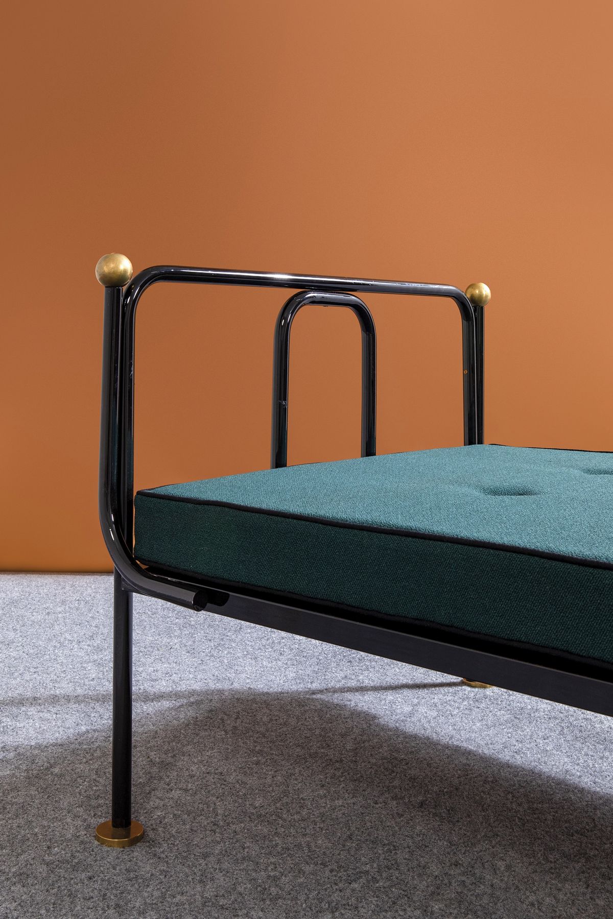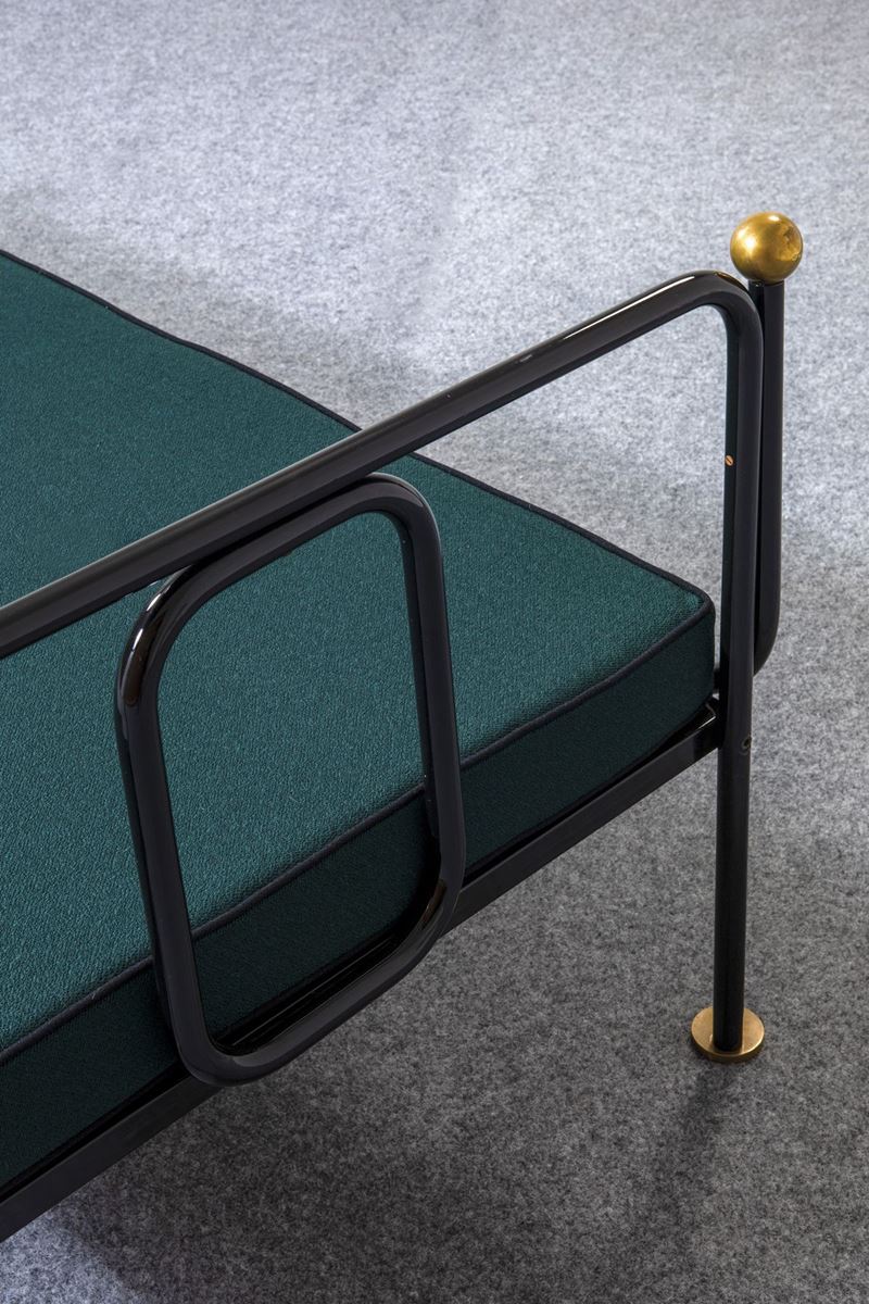 Struttura in tubolare metallico laccato. Dettagli in ottone