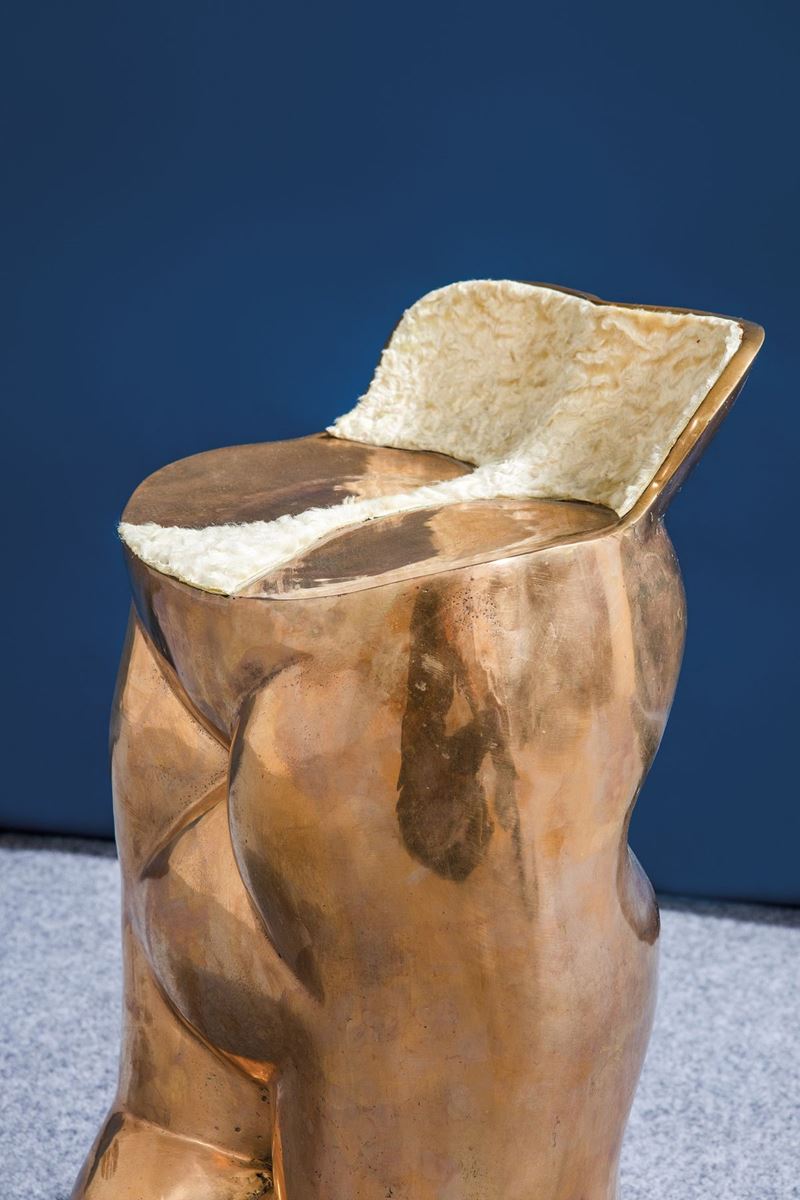 Struttura in fusione di bronzo lucidato e pelliccia.