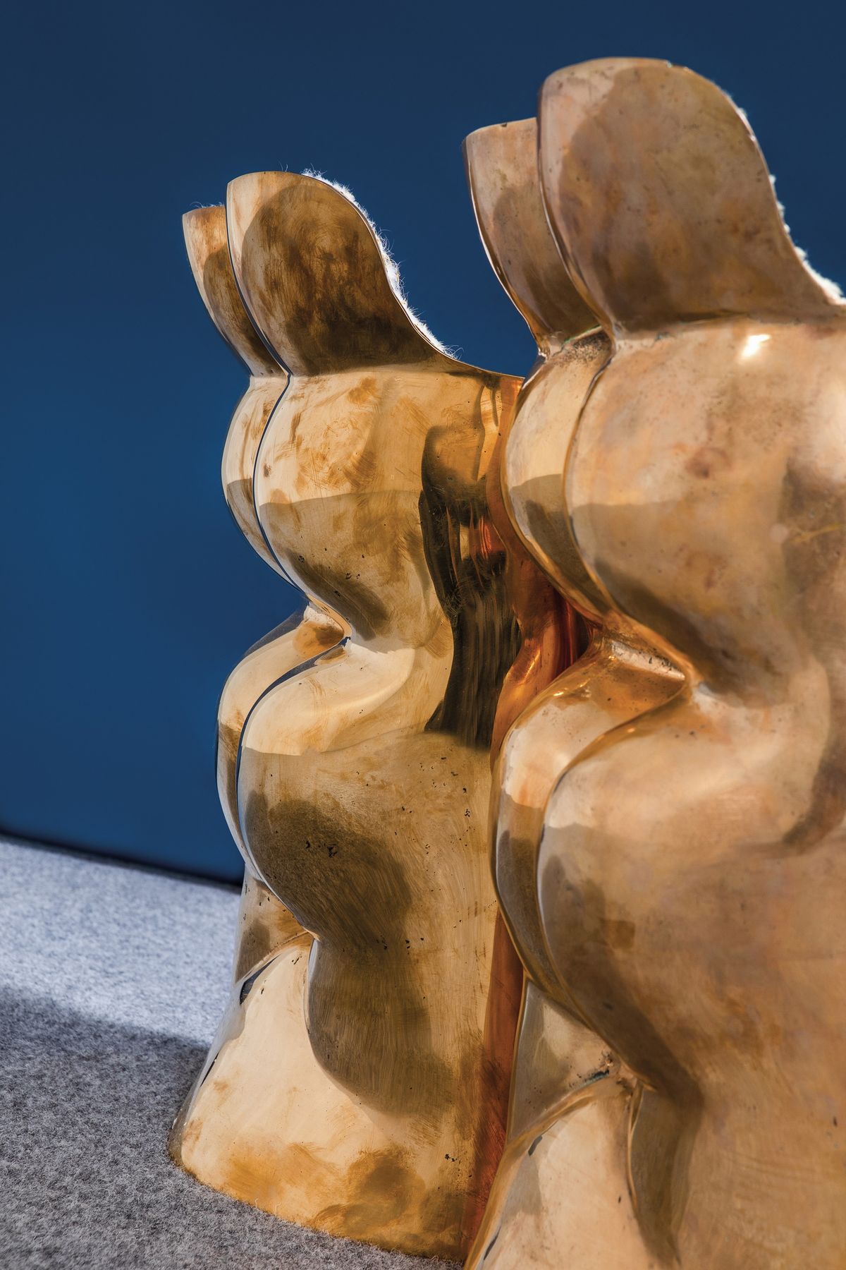 Struttura in fusione di bronzo lucidato e pelliccia.