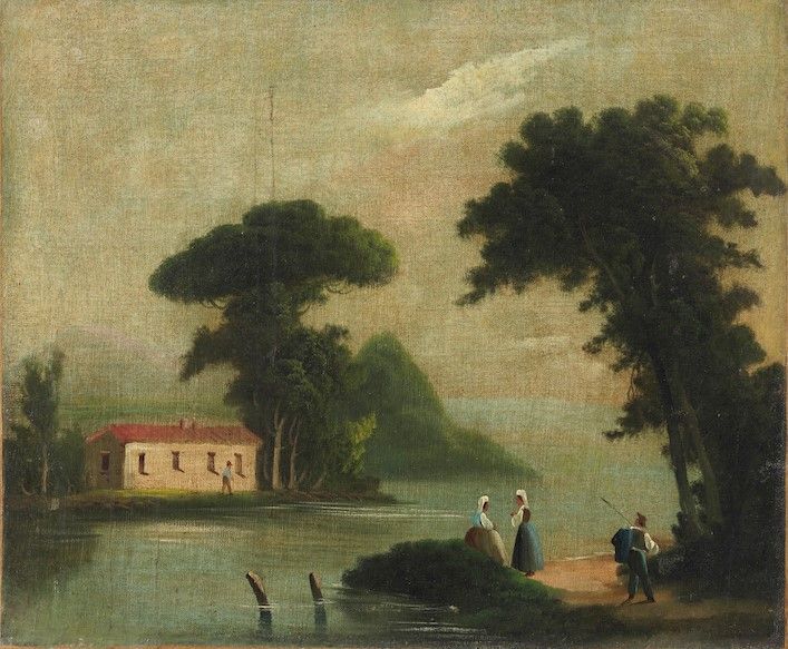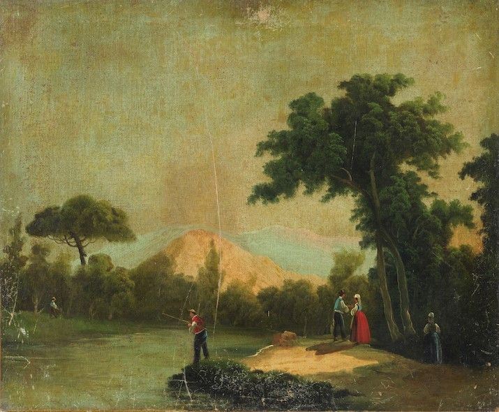 Scuola del XIX secolo Paesaggi fluviali con personaggi