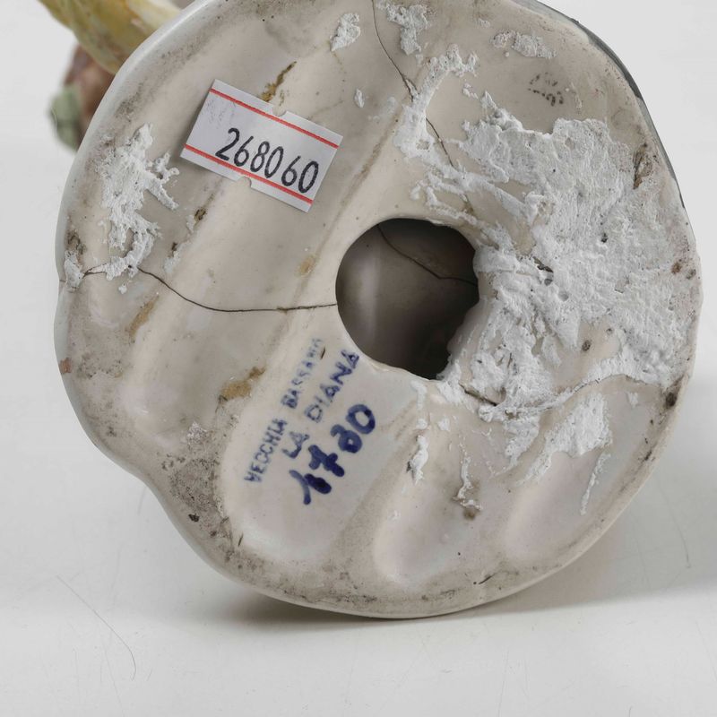 Porcellana. Marca: "Vecchia Bassano La Diana 1780". Altezza cm 21. Conservazione: rottura e felature alla base ricomposte in restauro; piccole mancanze