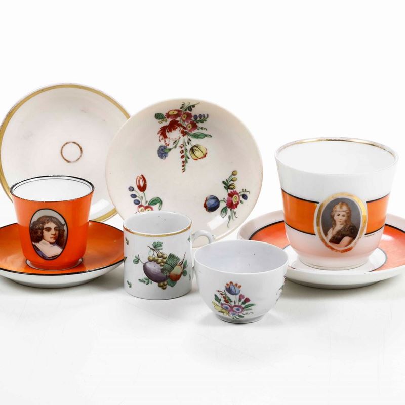 Quattro tazze e quatto piattini Doccia, Manifattura Ginori, XVIII e XX secolo