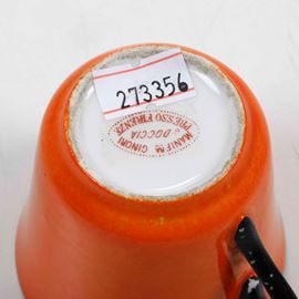 Altezza massima cm 8,8. Conservazione: buona; qualche usura e piccole sbeccature al bordo di un piattino