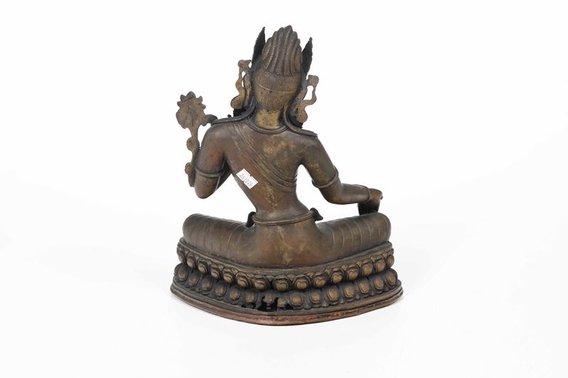 Figura di Tara seduta su doppio fiore di loto in bronzo, Cina, XX secolo