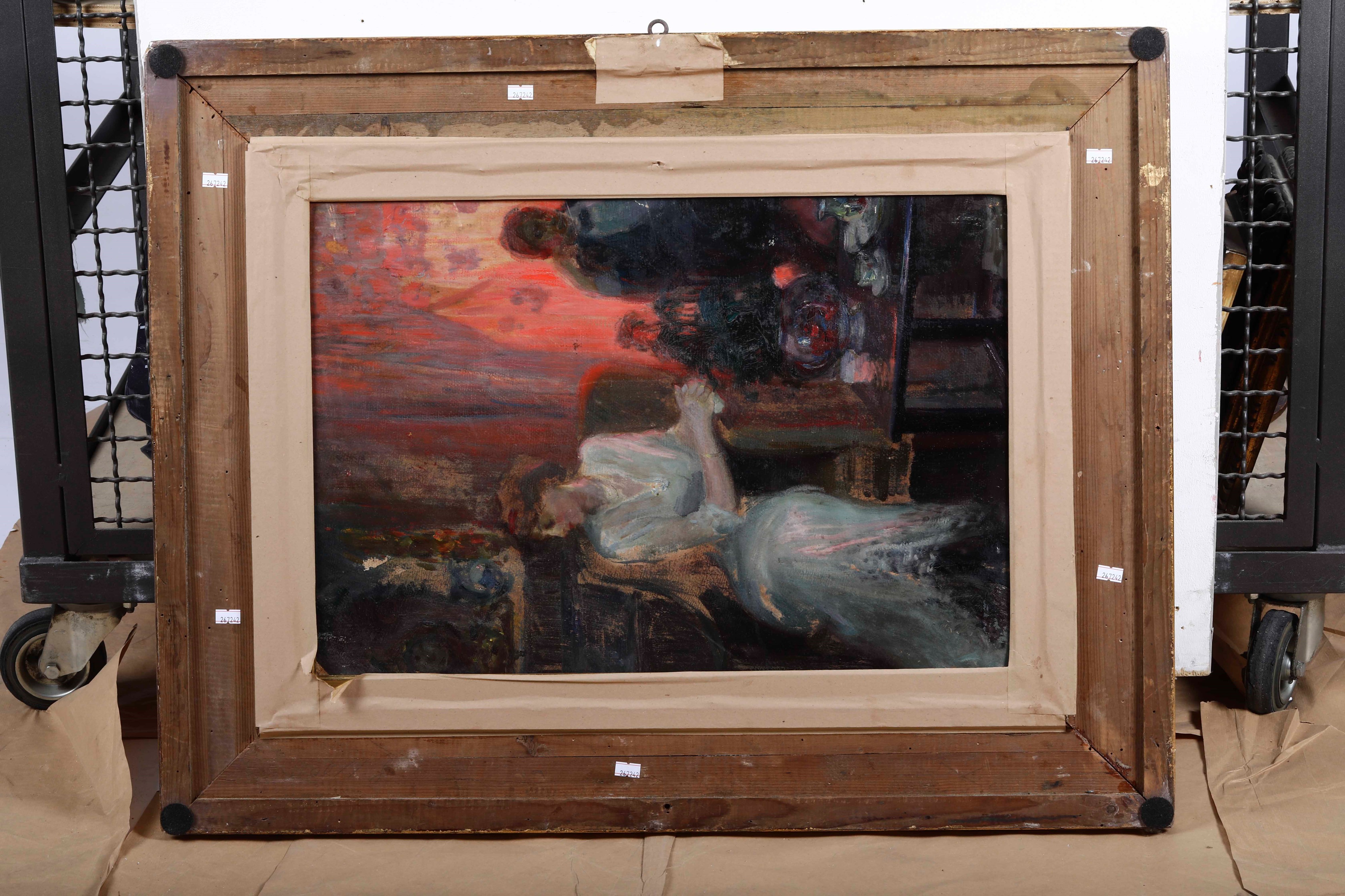 firmato in basso a destra. Al retro Figura femminile in un interno