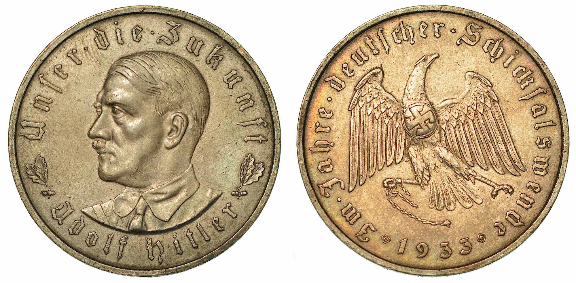 Busto rivolto a s. R/ Aquila frontale con ali spiegate, catena tra gli artigli e scudo con svastica sul petto. Opus Glöckler. Colbert/Hyder 30. g. 21,68 g. Diam. mm. 35,97. q.SPL