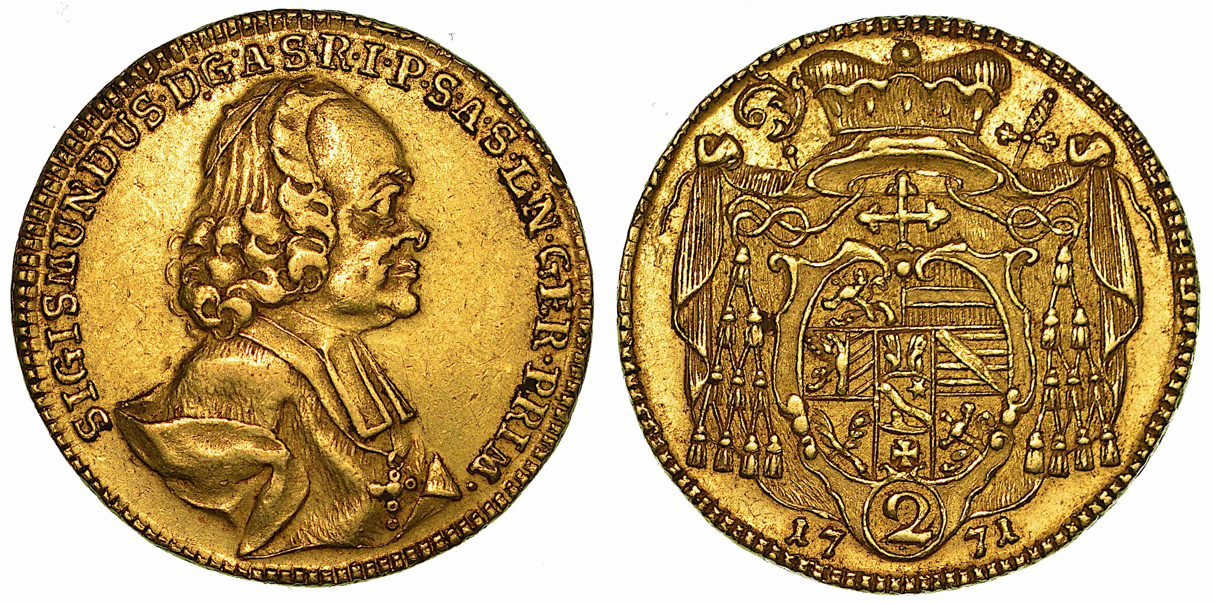 AUSTRIA. SIGISMUND VON SCHRATTENBACH, 1753-1771. 2 Dukaten 1771. Salisburgo.