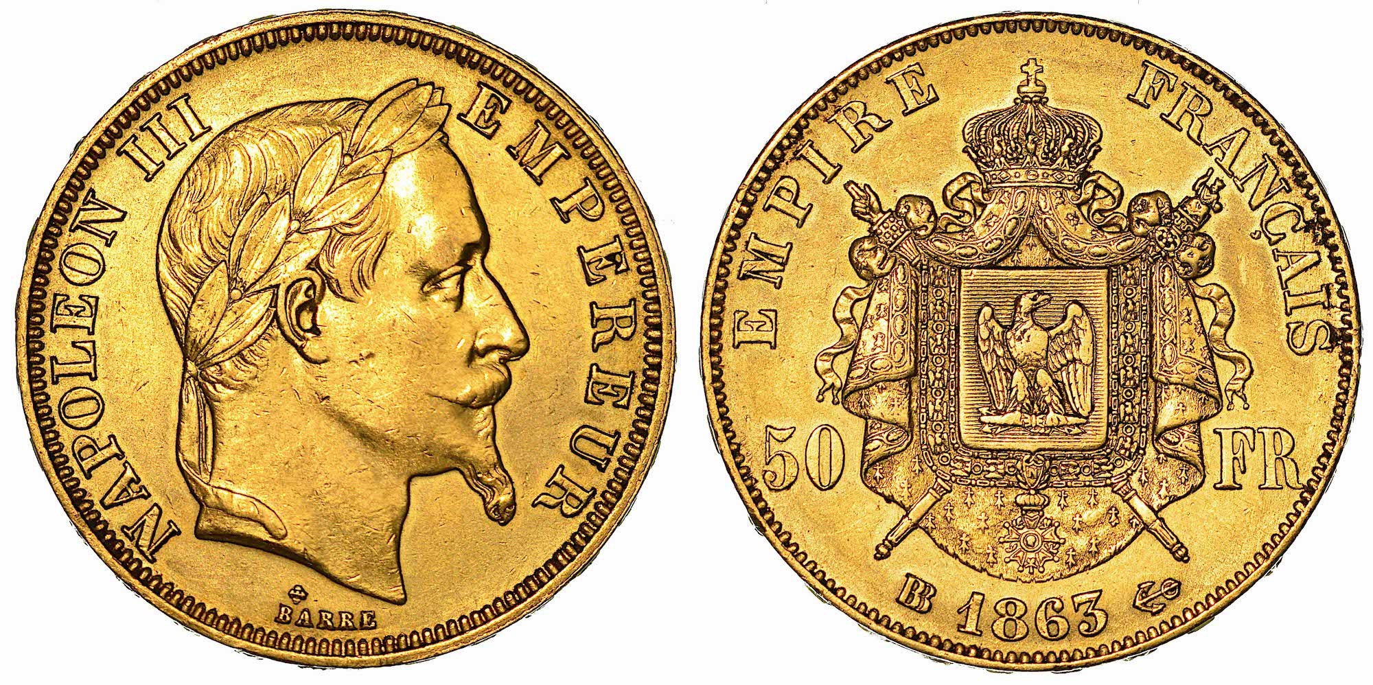 FRANCIA. NAPOLEON III, 1852-1870. 50 Francs 1863. Strasburgo.