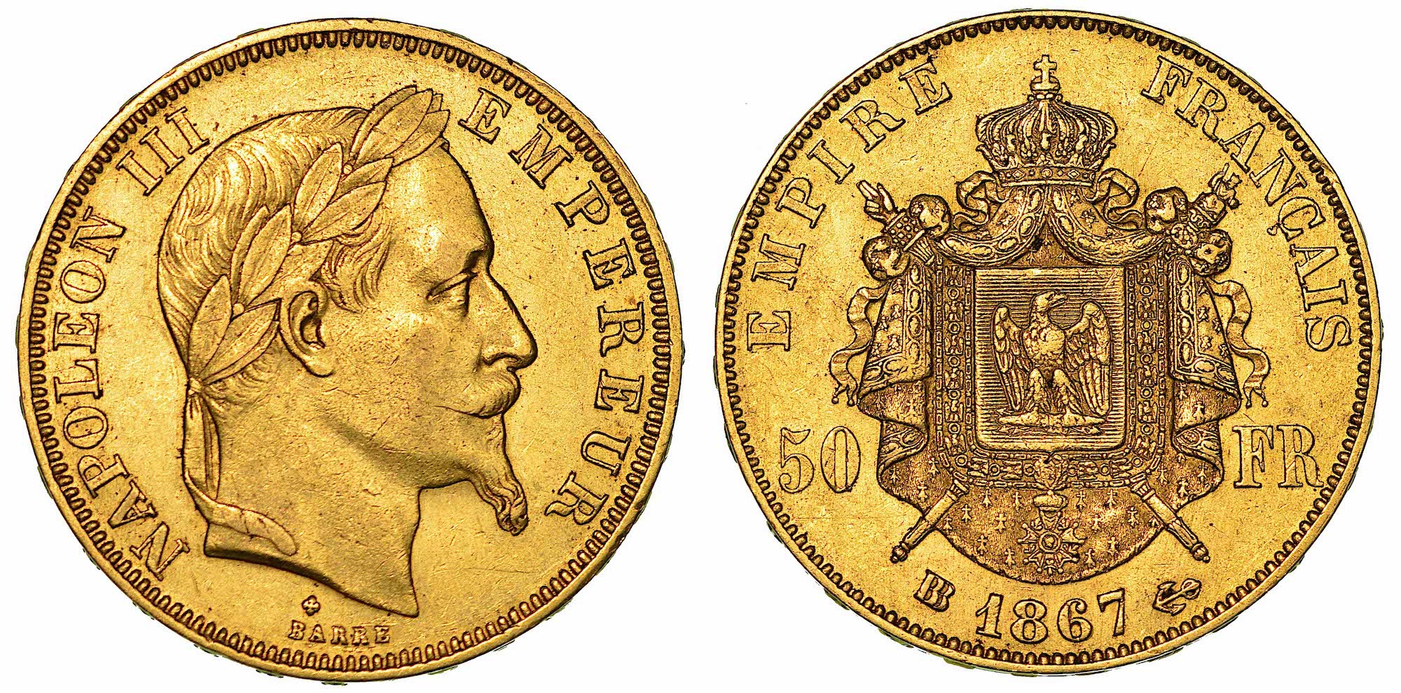 FRANCIA. NAPOLEON III, 1852-1870. 50 Francs 1867. Strasburgo.