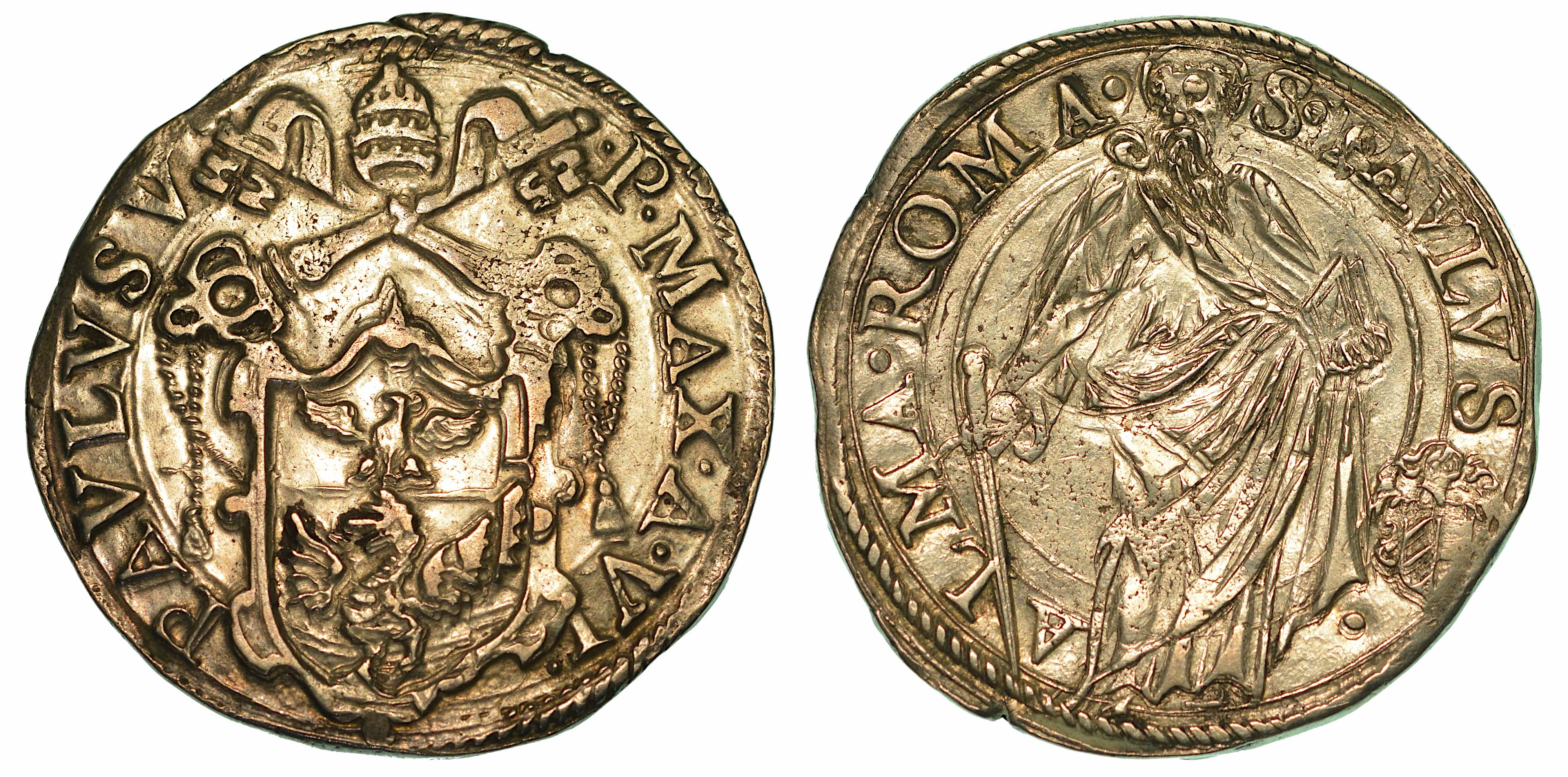 PAOLO V (CAMILLO BORGHESE), 1605-1621. Testone A. V. Roma.