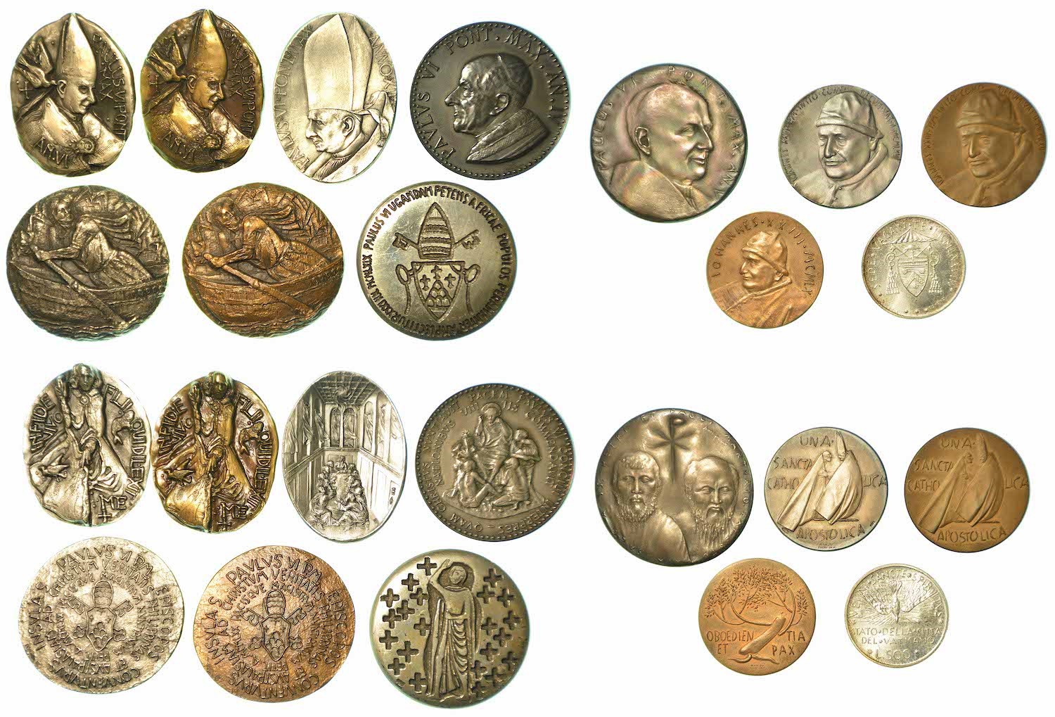 Sono rappresentati i seguenti papi: PAOLO VI (8 esemplari); GIOVANNI XIII (3 esemplari). Esemplari in argento e bronzo. Si aggiunge moneta da 500 Lire SEDE VACANTE 1978. Ottima qualità.