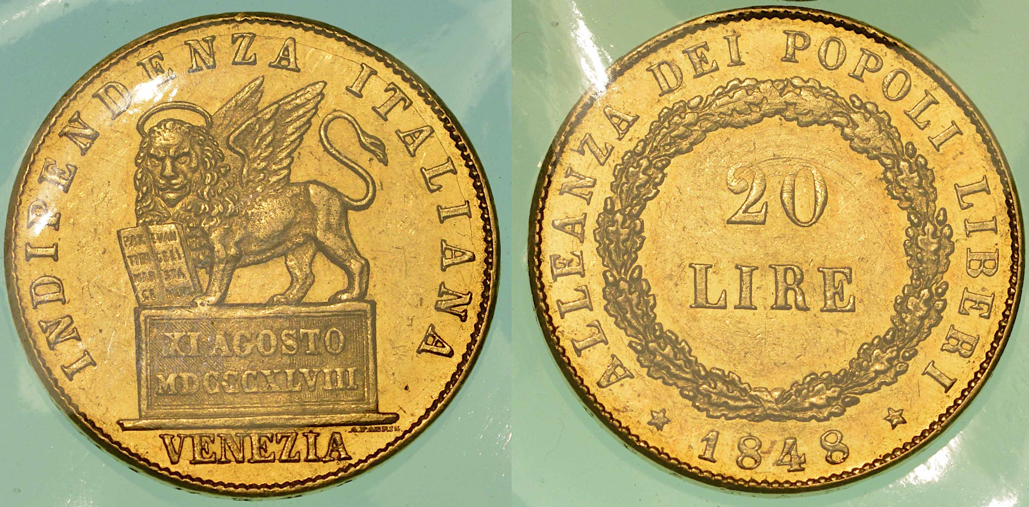 VENEZIA. GOVERNO PROVVISORIO DI VENEZIA, 1848-1849. 20 Lire 1848.
