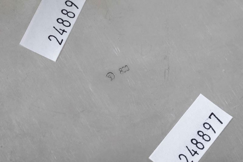 Cestino. Argento fuso e sagomato, manico ad arco in legno ebanizzato. Argenteria artistica italiana del XX secolo