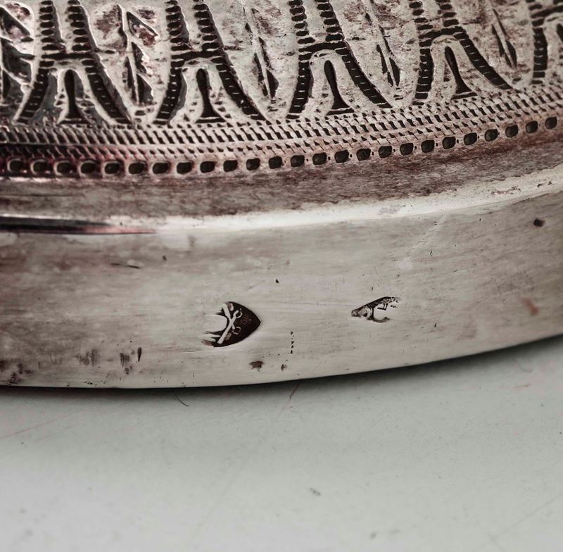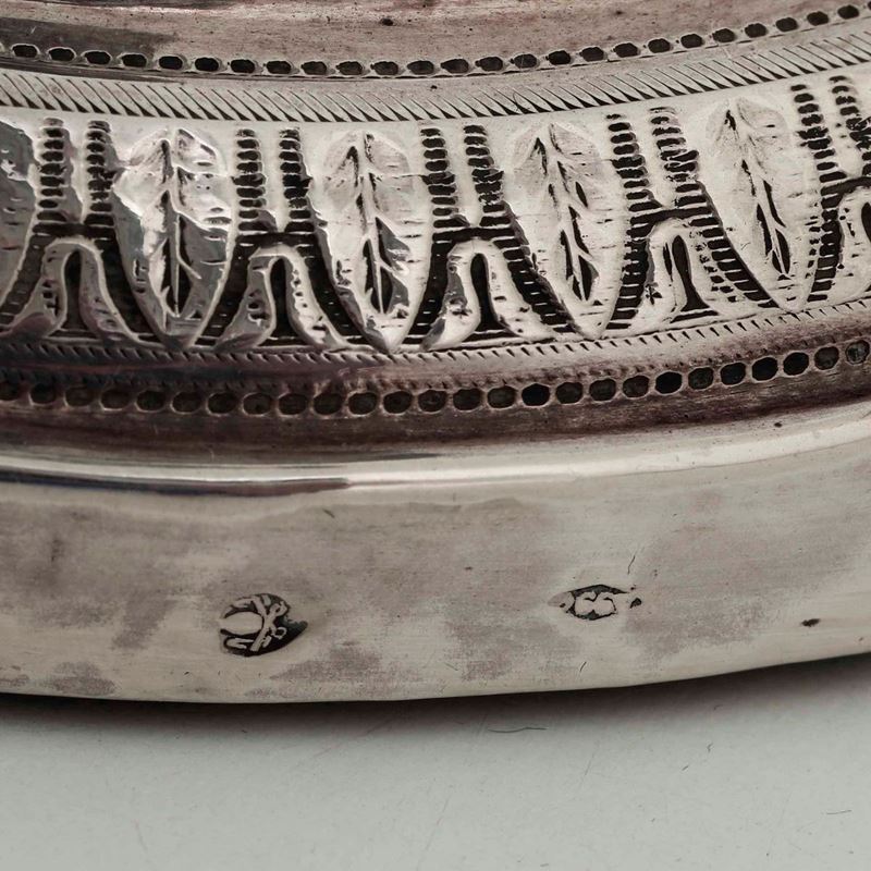Coppia di candelieri in argento, Roma XIX secolo, argentiere Angelo Giannotti (1824-1865)