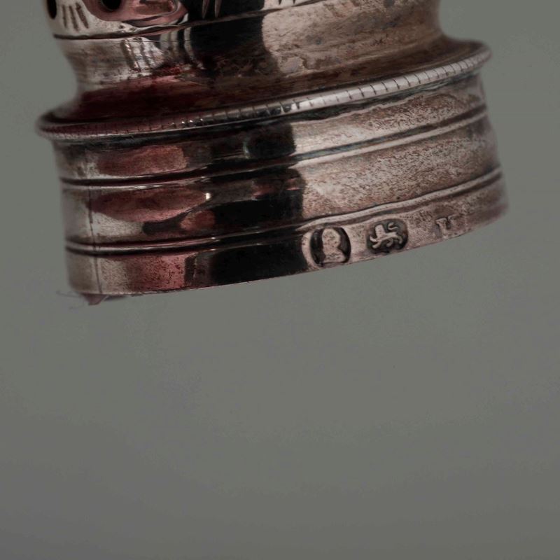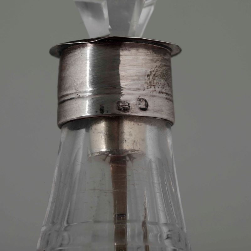 Cruet in argento fuso, sbalzato, cesellato e traforato, vetro molato e legno. Londra 1787, argentiere Robert Hennel