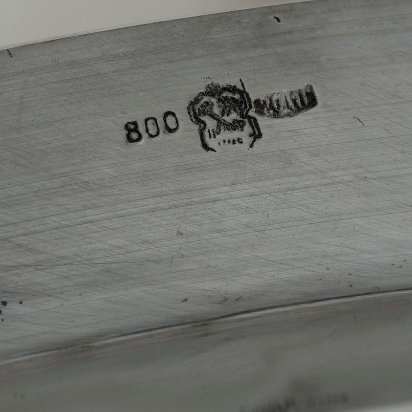 Legumiera e salsiera in argento. Legumiera argenteria milanese del XX secolo. Argentiere Ilario Pradella per Zendrini, Torino; salsiera con bolli consunti