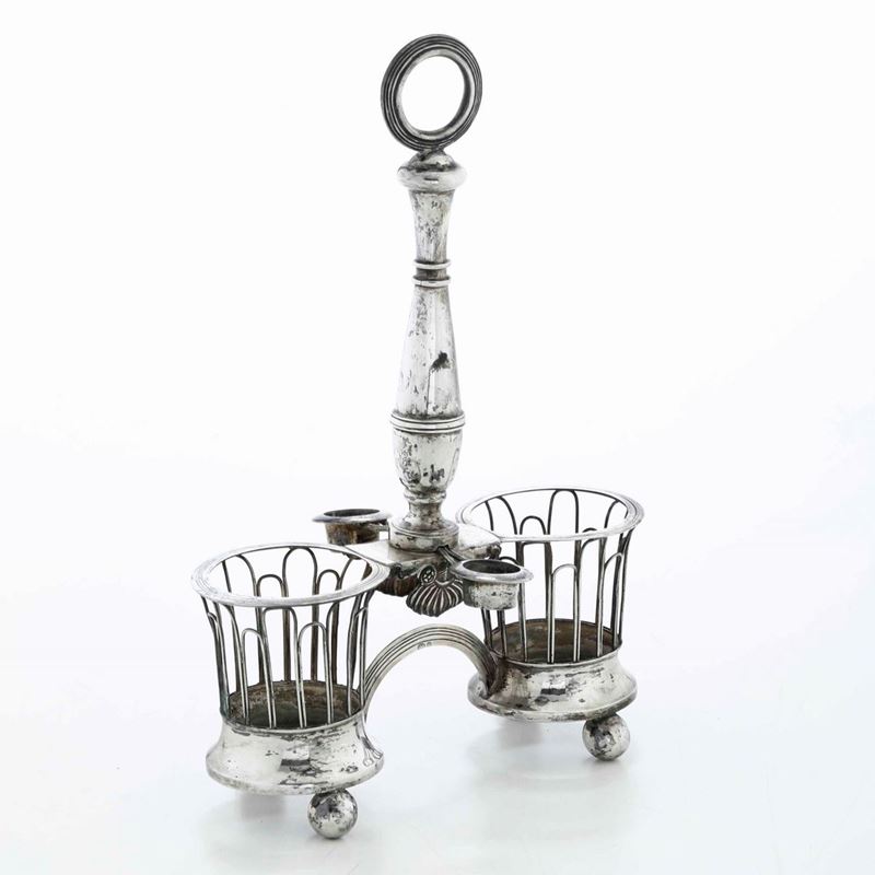 Lotti di tre oggetti in argento composto da oliera, formaggiera e zuccheriera. Varie manifatture italiane del XIX-XX seco [..]